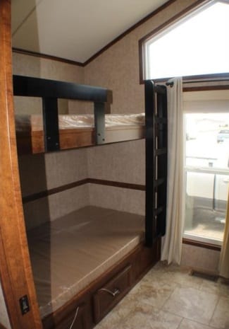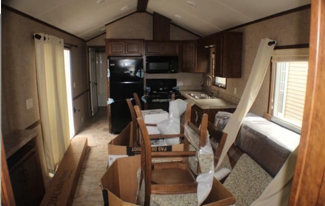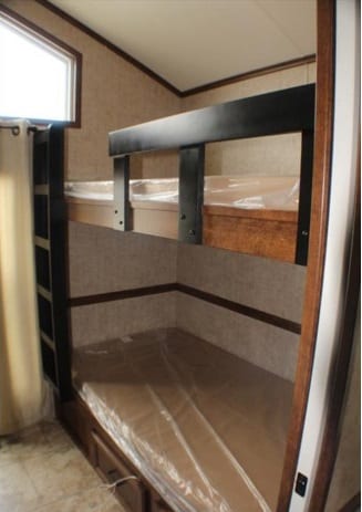 Contact SalesOur Woodland Park Timber Ridge Arlington park model is a unique non-lofted luxury unit with a bunk room located at the front. At the far end of the home is the master bedroom, making this 399-square-foot home perfect for a family. Parents can enjoy their privacy, and so can the children, while a central kitchen and living area offers a warm, inviting, connected space for the family to share. Ready to customize the Arlington park model for your family? Give us a call today for a personalized quote.