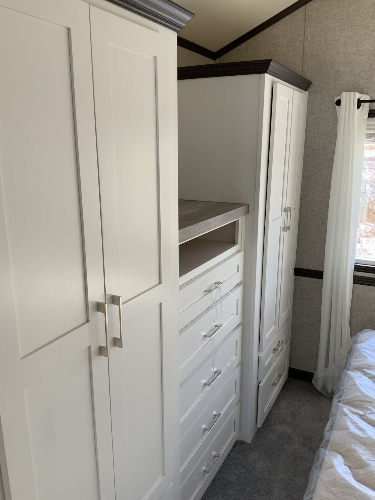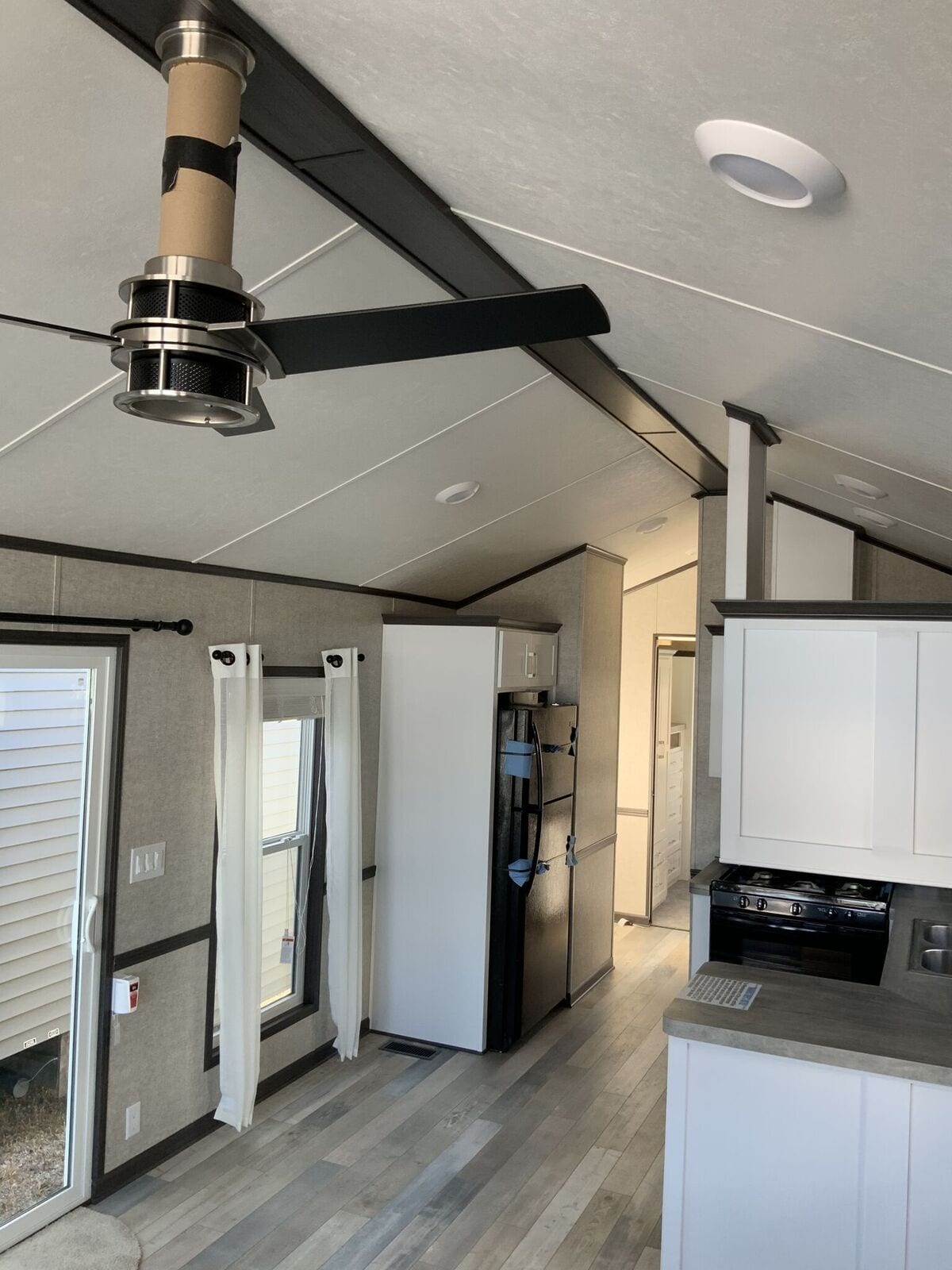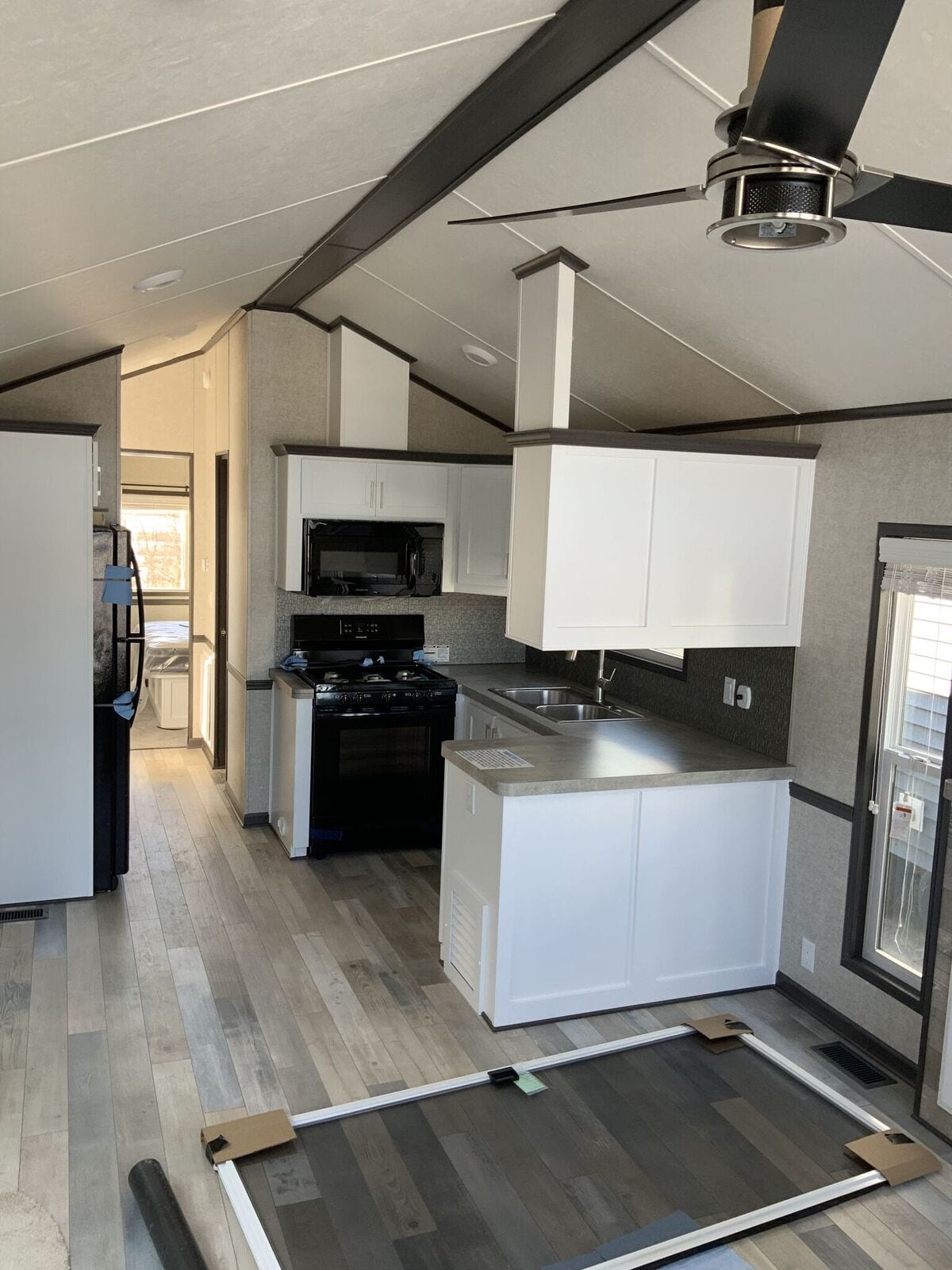 Contact SalesOur Woodland Park Timber Ridge Denali park model is a non-lofted luxury unit with a built-in entertainment center, central kitchen, and spacious layout. The first feature that will grab your attention when you approach this house is the huge bayed windows in front. These windows offer dramatic views while bringing plenty of natural light into the combined kitchen and living room featuring a pitched ceiling. This house also features a downstairs bedroom and a bathroom with extra storage space. Discover all the features we packed into 399 square feet and find out how incredibly roomy a home with such a small footprint can be. Request a customized quote on the Denali today.