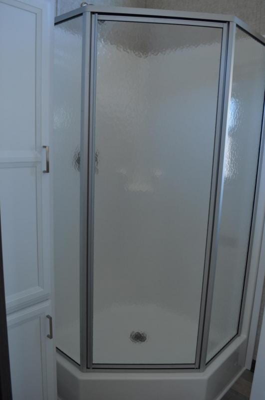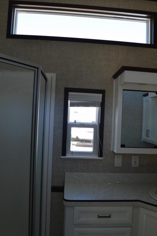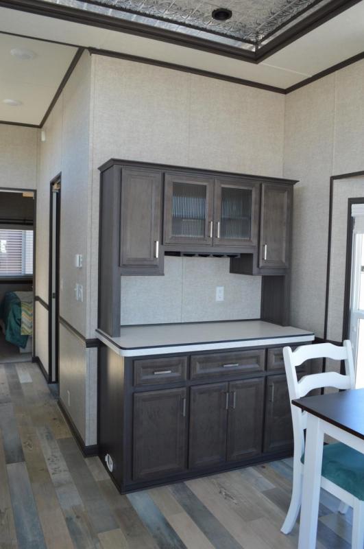 Contact SalesLuxury finds its home in our Woodland Park Timber Ridge Everglades park model, and so will you. The Everglades is a non-lofted luxury unit with a wide open layout for a spacious kitchen, dining, and living area. This home features a contrasting color scheme with tan walls and dark trim around the windows, accenting the simple but elegant geometry defining the interior. Huge windows positioned low to the floor with clerestory windows above create unsurpassed openness in the dining and seating areas. The downstairs bedroom features a dresser, room for a TV, and a pair of closets as well as cabinets above the bed. In the bathroom are a large shower and a triple set of mirrors above a vanity with a wraparound counter. Call now for a quote.
