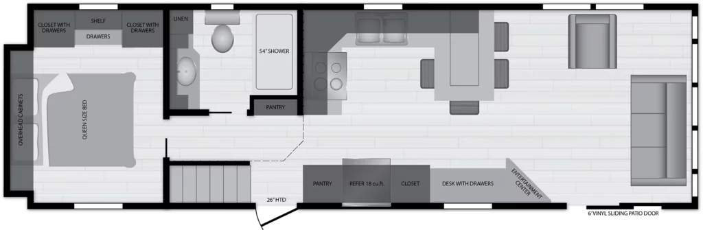 Discover the Kropf Island Series, where 14 thoughtfully designed floor-plans offer the perfect foundation for your personalized park model home. Built with superior craftsmanship, this series provides a wide range of standard features, along with extensive upgrade options to suit your unique needs. Whether you're seeking specific comforts or enhanced functionality, this home can be customized to fit your lifestyle—ensuring you get exactly what you want without unnecessary extras.ISLAND SERIES STANDARD FEATURES: