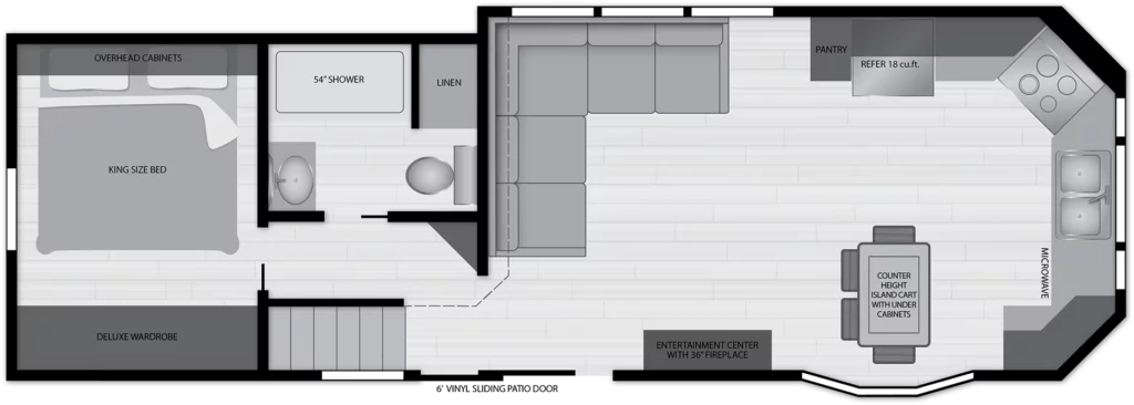 Discover the Kropf Island Series, where 14 thoughtfully designed floor-plans offer the perfect foundation for your personalized park model home. Built with superior craftsmanship, this series provides a wide range of standard features, along with extensive upgrade options to suit your unique needs. Whether you're seeking specific comforts or enhanced functionality, this home can be customized to fit your lifestyle—ensuring you get exactly what you want without unnecessary extras.ISLAND SERIES STANDARD FEATURES: