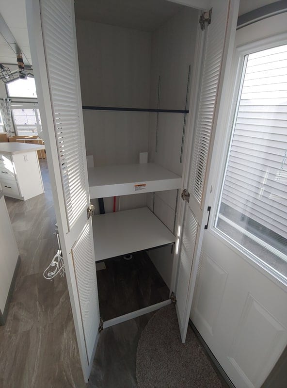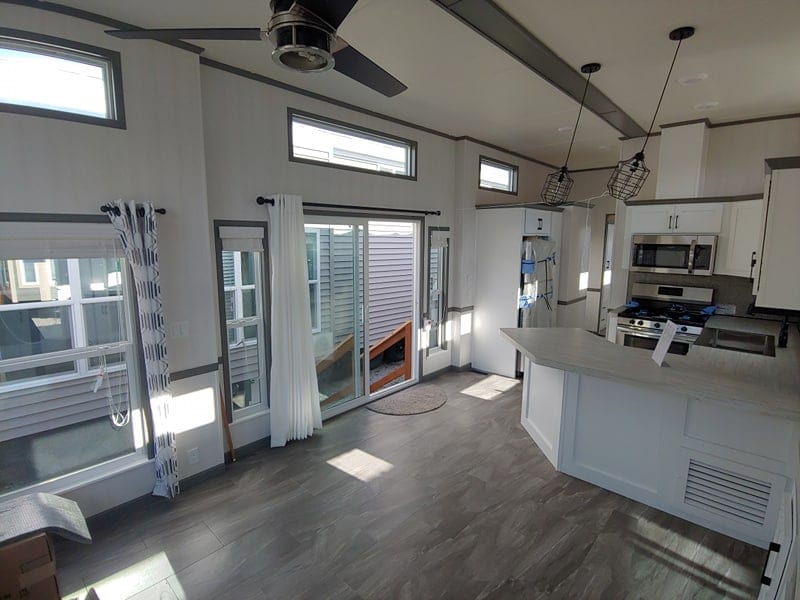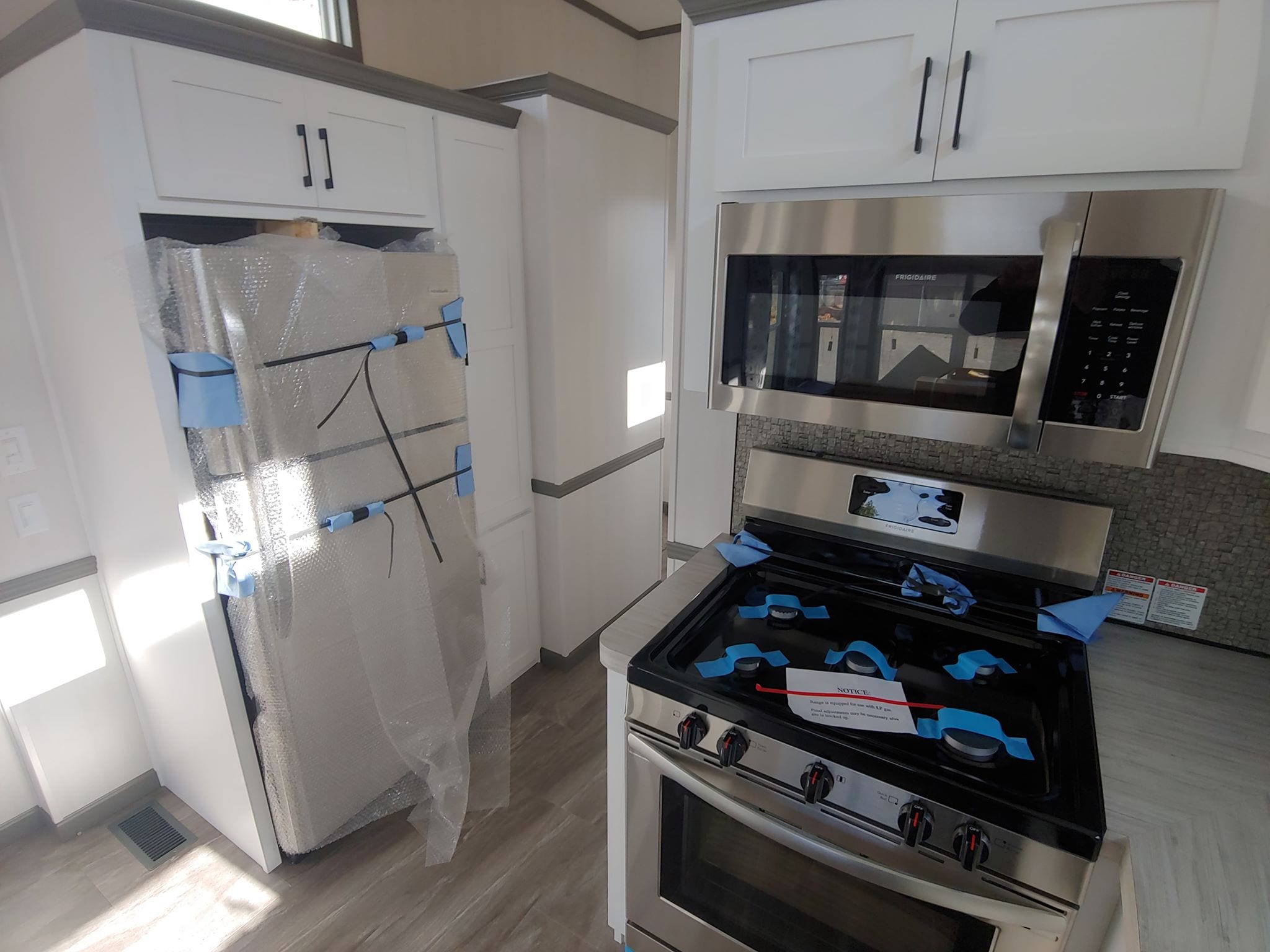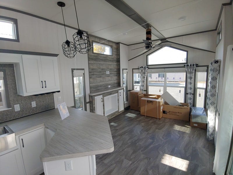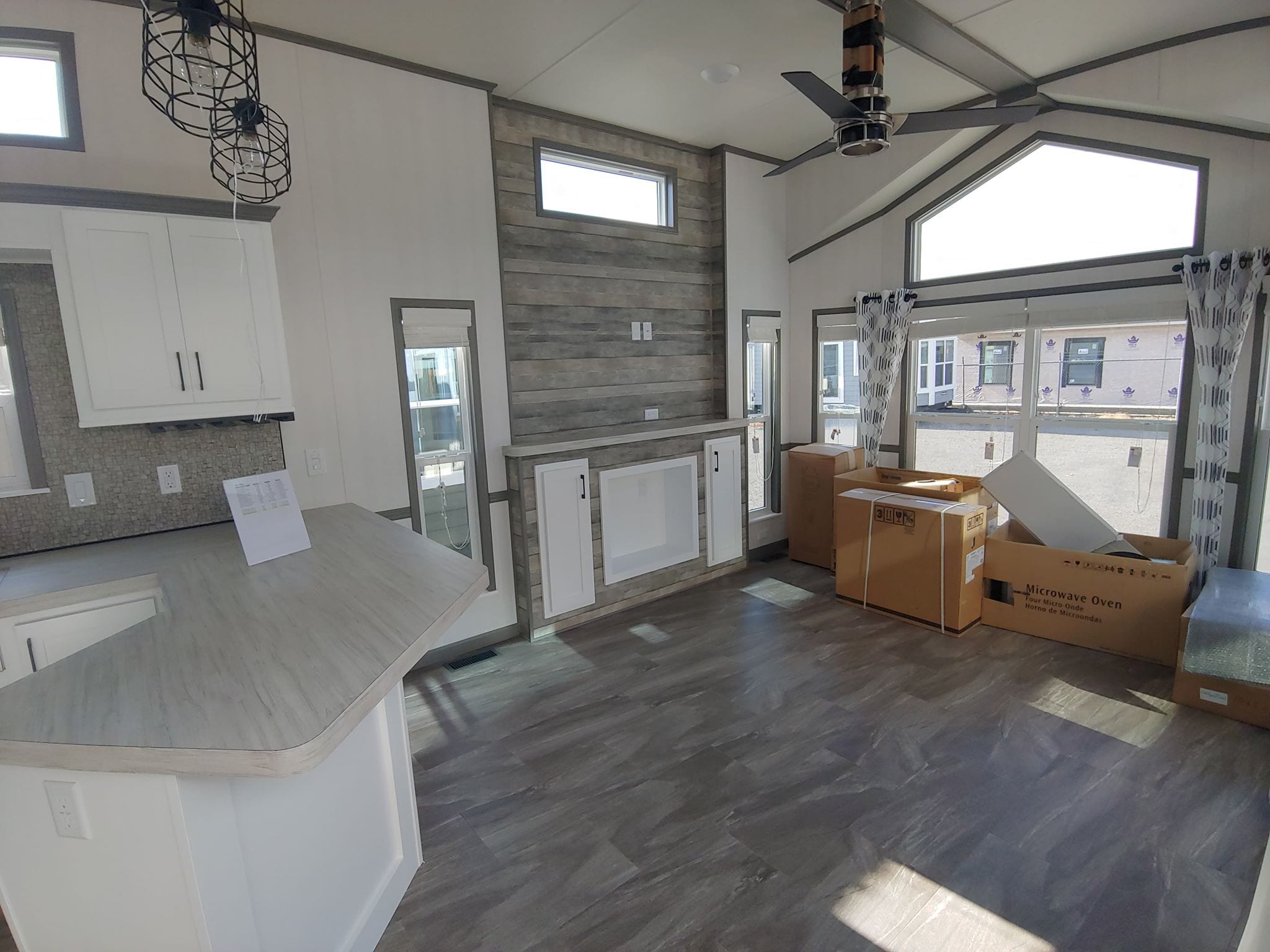 Contact SalesEnter the stately Kennedy, one of our most popular Woodland Park Timber Ridge models. This non-lofted unit invites you to live your best life. Breathtaking views through expansive windows, a wide open living room and kitchen full of natural light, and a built-in entertainment center await you. The kitchen features state-of-the-art appliances ready to go. Venturing beyond, you’ll find the bathroom with its roomy shower and the generous downstairs bedroom complete with cabinets, a dresser, a pair of closets, and large windows bathing your sleeping space with light. Call now for a customized quote.