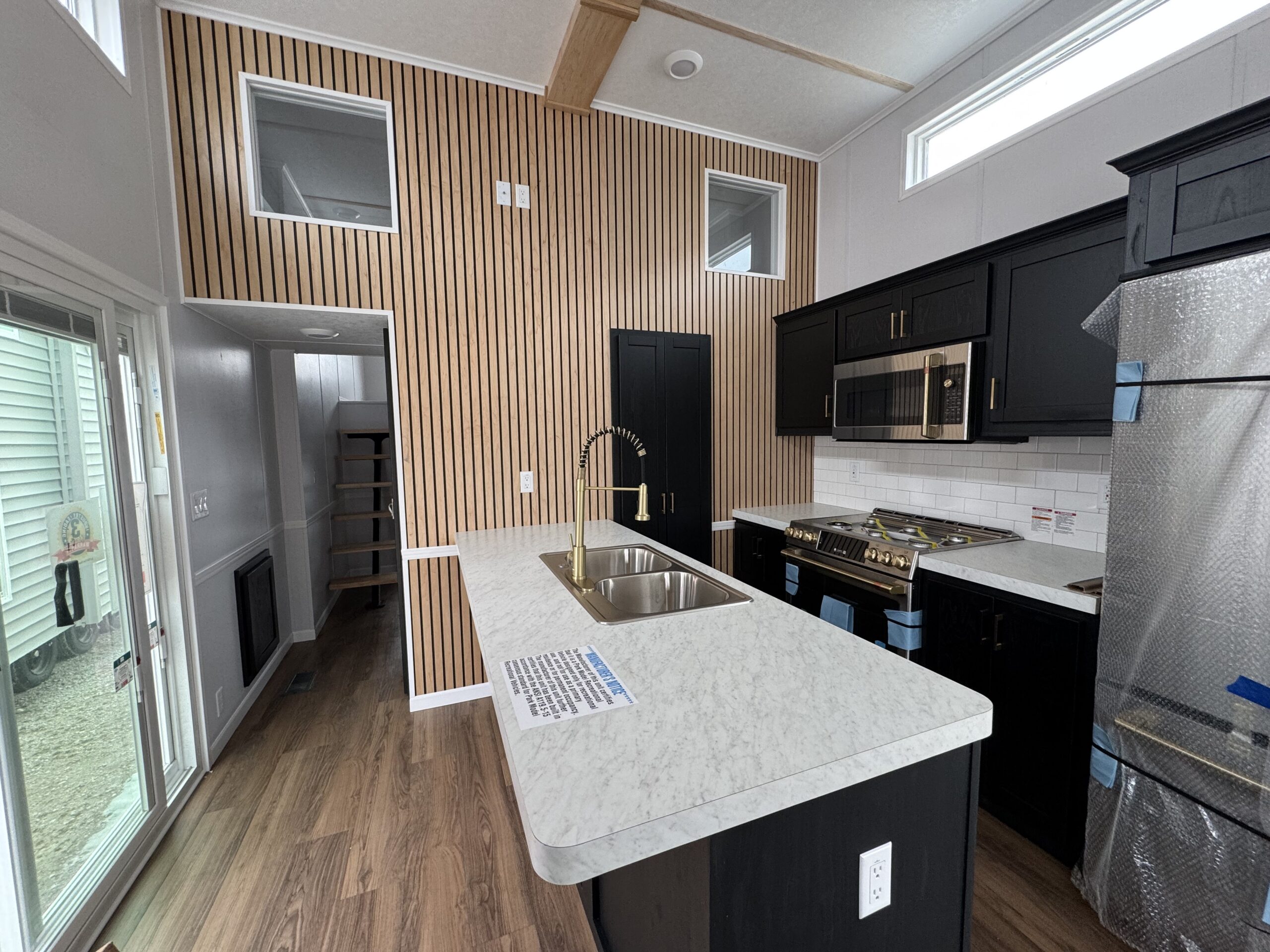 This model is unlike anything seen before in a park model home! Featuring a lighted acoustic accent wall and the first-ever walk-in pantry showcased in a park model, this unit sets a new standard for design and functionality.